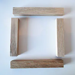 Zuerst verleimen Sie zwei Rahmen à 4 Holzleisten. Unten und oben nutzen Sie je die langen Leisten, für die Seiten die kurzen. Verwenden Sie den Holzleim sparsam: ein Tropfen pro Ecke ist vollkommen ausreichend.