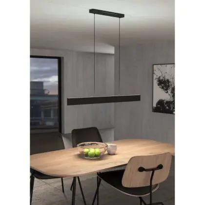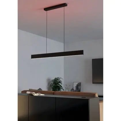 Die Eglo Connect.Z Smart Pendelleuchte Andreas-Z Stahl Schwarz 38W 4600lm - 827-865 Abstimmbares Weiß + RGB | Dimmbar sorgt für eine angenehme Ausleuchtung und punktet durch modernes Design. Diese Leuchte ist speziell zur Montage an der Decke vorgesehen.