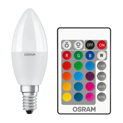 Beschreibung Osram LED E14 Kerze Matt 6W 470lm - 827 Extra Warmweiß | RGBW - Dimmbar - Fernsteuerung - Ersatz Für 40W