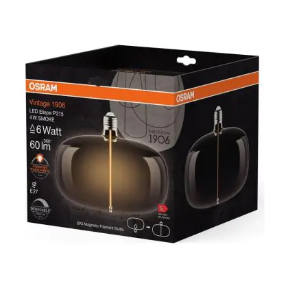 Die Osram Vintage 1906 LED E27 Special Fadenlampe Smoke 4W 60lm - 818 Extra Warmweiß | Dimmbar - Ersatz Für 15W ist eine effiziente E27 LED-Lampe mit Retrodesign und der perfekte Ersatz für Ihre konventionellen 15W Lampen mit E27. Zudem strahlt sie Licht in der Farbtemperatur 1800K - Extra Warmweiß aus und punktet durch eine lange Lebensdauer.